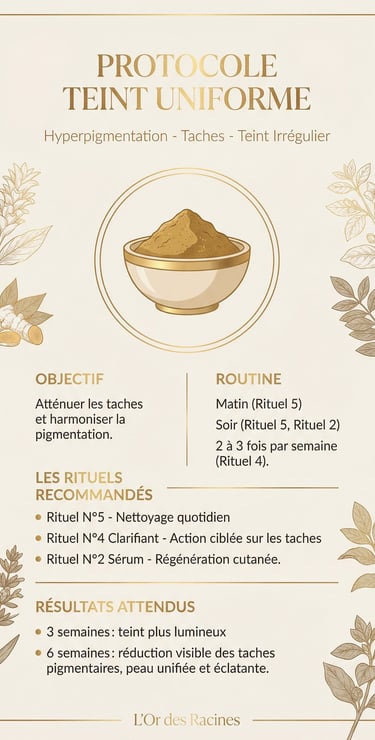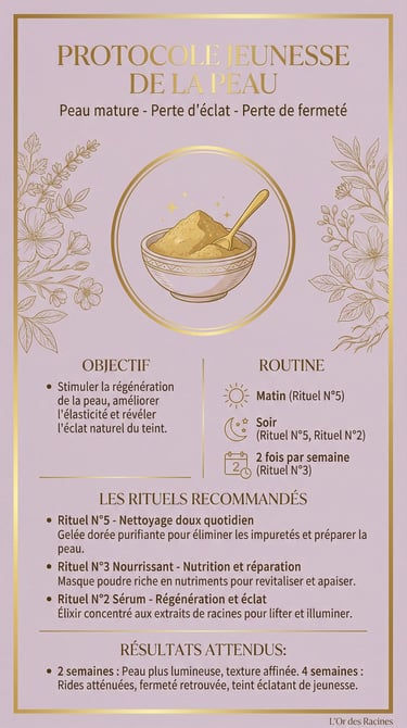 Les Rituels L'Or des Racines ont été conçus pour répondre aux besoins spécifiques de la peau et l’accompagner vers un teint plus équilibré, lumineux et uniforme.